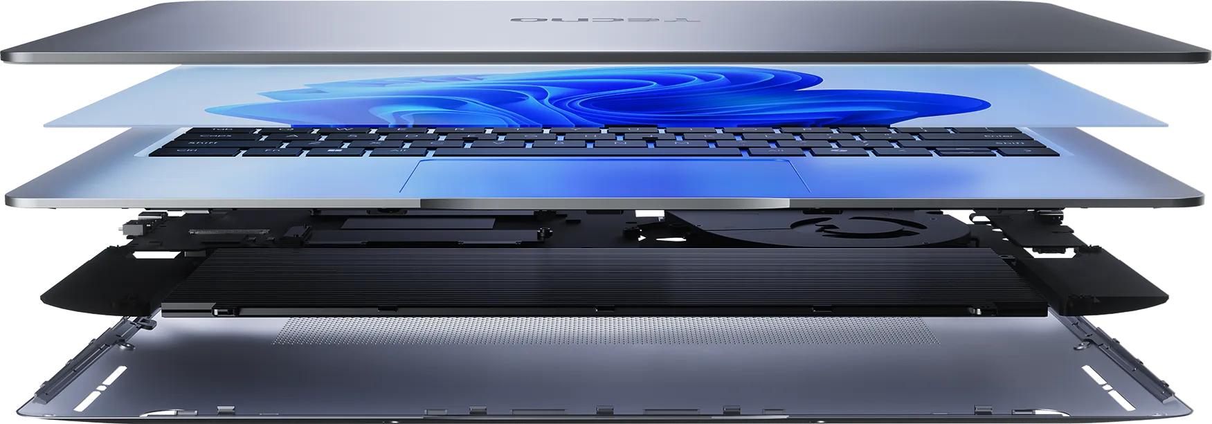 Tecno Megabook S14MM выполнен в тонком и лёгком корпусе из магниевого сплава, благодаря чему ноутбук ощущается премиальным и одновременно почти невесомым. Вес менее килограмма делает его идеальным спутником для ежедневной работы и поездок, а толщина 14.9 мм позволяет легко помещать устройство в рюкзак или сумку. Лаконичный серый цвет подчёркивает деловой стиль, а клавиатура с подсветкой обеспечивает комфортную работу в тёмное время суток.