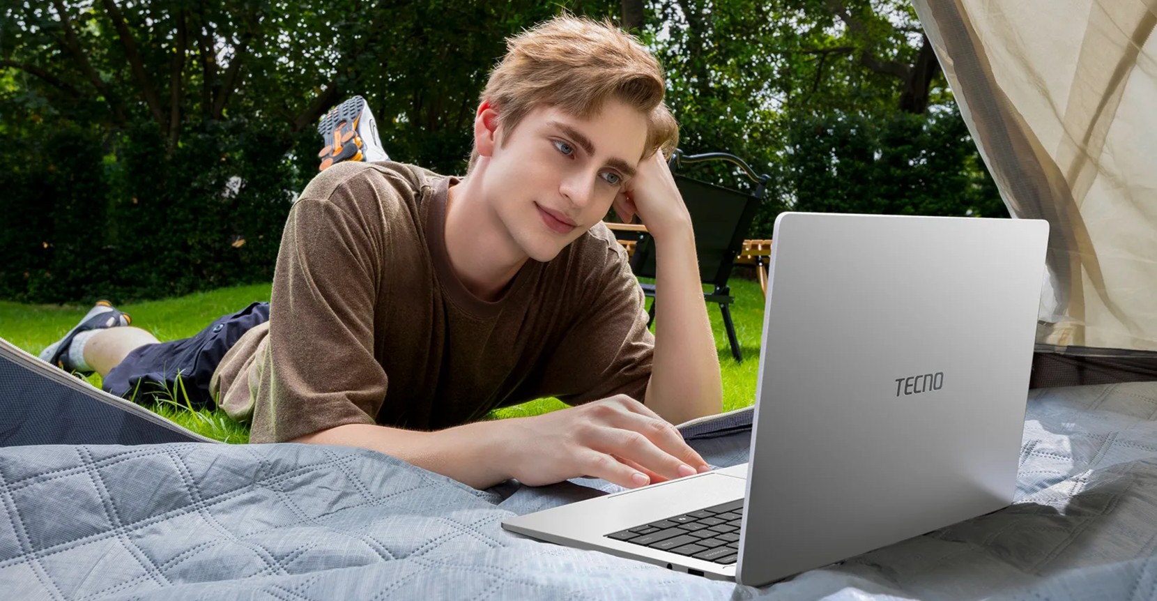 Tecno Megabook T14RA Air создан как лёгкий и аккуратный рабочий инструмент. Корпус тонкий, минималистичный, с ровными линиями и аккуратными рамками вокруг экрана. Ноутбук ощущается очень лёгким в руках, поэтому его удобно носить с собой каждый день. Конструкция собрана жёстко, без лишнего прогиба, а форм-фактор позволяет комфортно пользоваться устройством как за столом, так и в дороге.