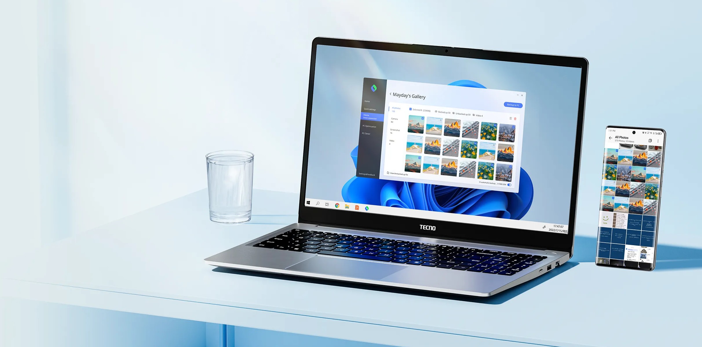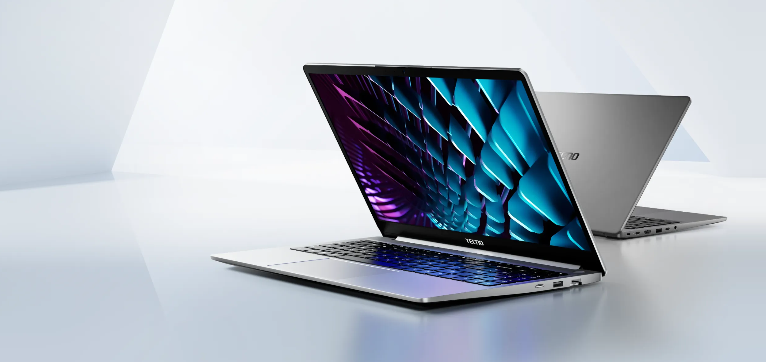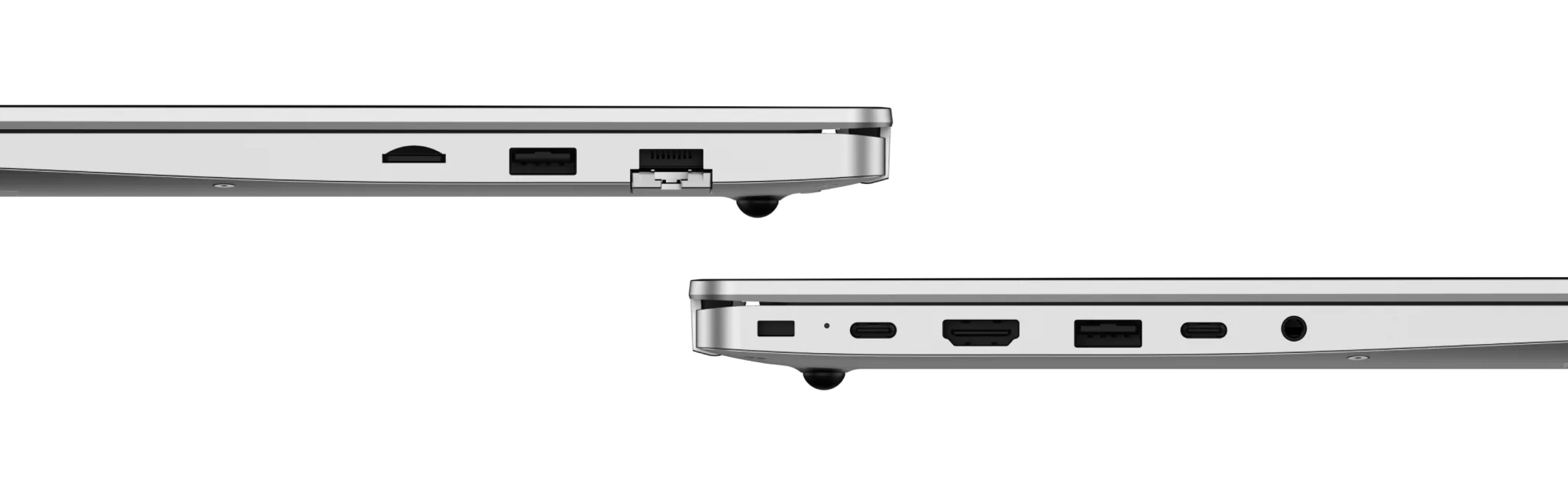 Tecno Megabook K15S выполнен в алюминиевом корпусе и выглядит аккуратно и сдержанно. Толщина 17.3 мм и вес 1.7 кг делают ноутбук удобным для повседневной переноски, а прочная конструкция хорошо подходит для постоянной работы вне дома. Крышка раскрывается на 180 градусов, что удобно при совместной работе или презентациях. В корпус встроен сканер отпечатка пальца и предусмотрен кенсингтонский замок.