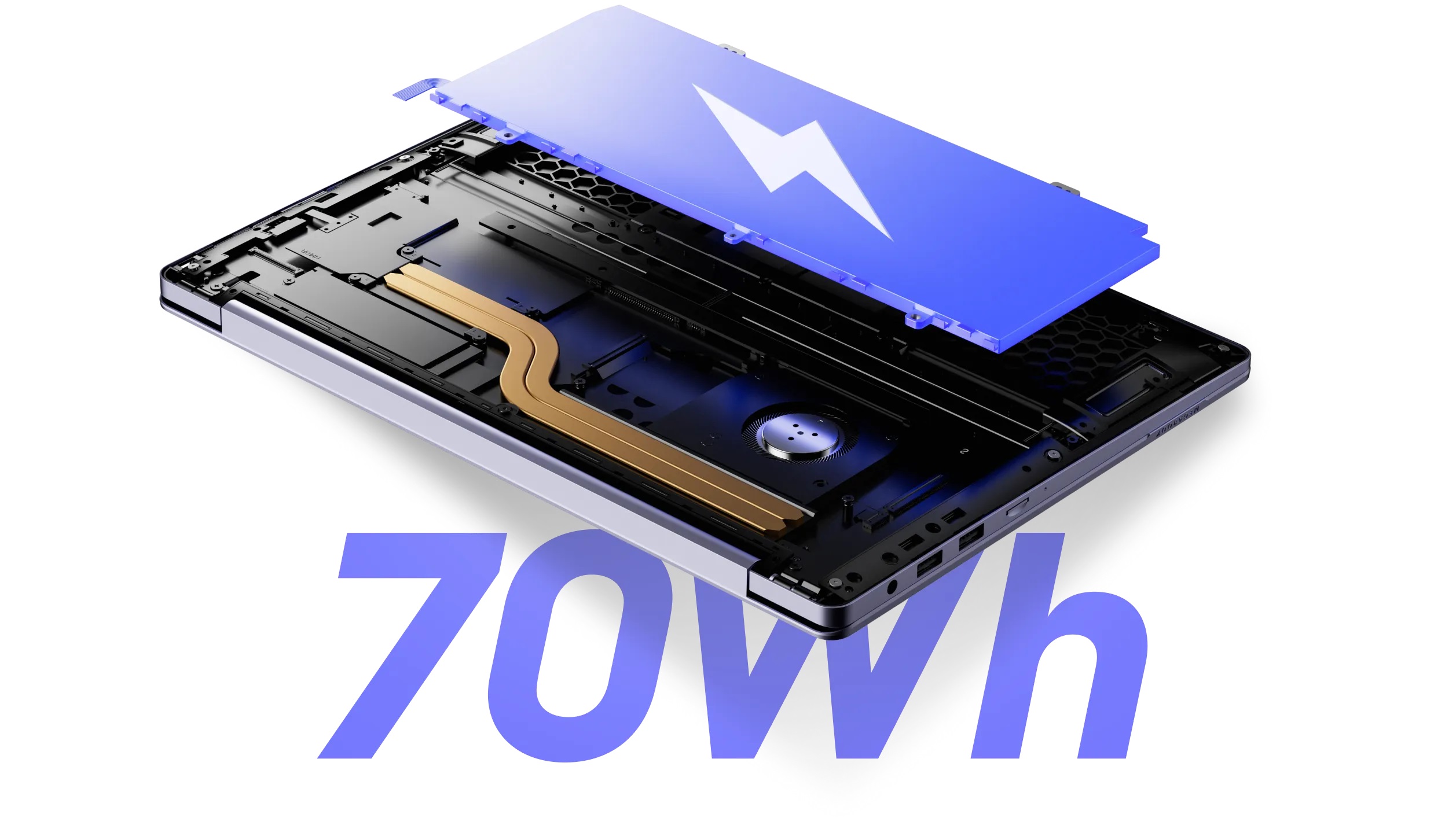 Большой кулер и четыре крупных вентиляционных отверстия обеспечивают эффективное рассеивание тепла, что положительно влияет на мощность работы ноутбука.