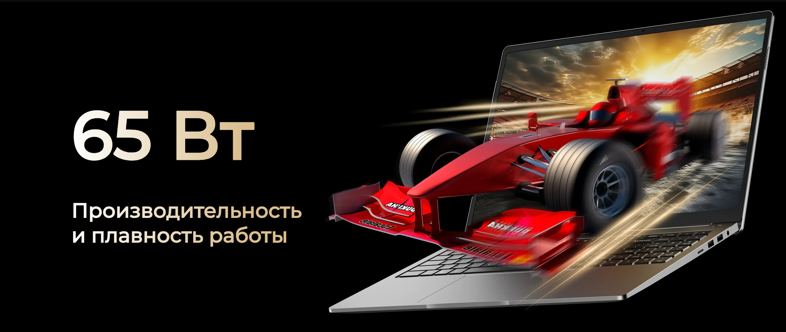 Высокая производительность ноутбука с тепловой мощностью 65 Вт TDP позволит не беспокоиться о скорости и плавности работы даже в требовательных задачах