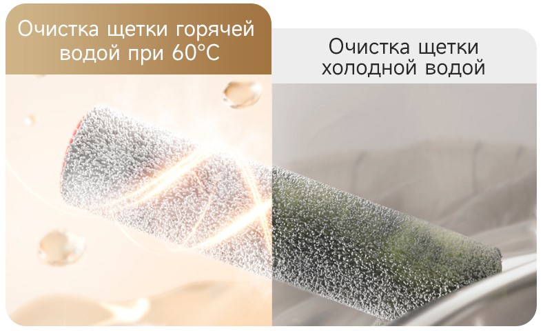 Очистка щетки при температуре 60°C