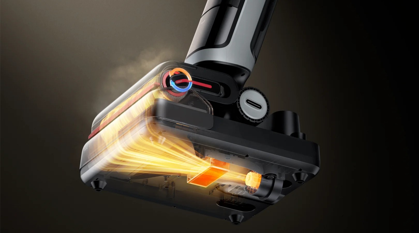 Вертикальный моющий пылесос Dreame H15 Pro Heat выполнен из ударопрочного пластика черного цвета. Устройство предназначено для комплексной уборки: сухого сбора мусора, мытья полов, ковровых покрытий и быстрой сушки поверхностей.