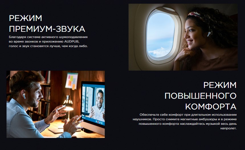 | Комплектация | 2 пары сменных амбушюр, зарядная станция-футляр, кабель для зарядки, документация |