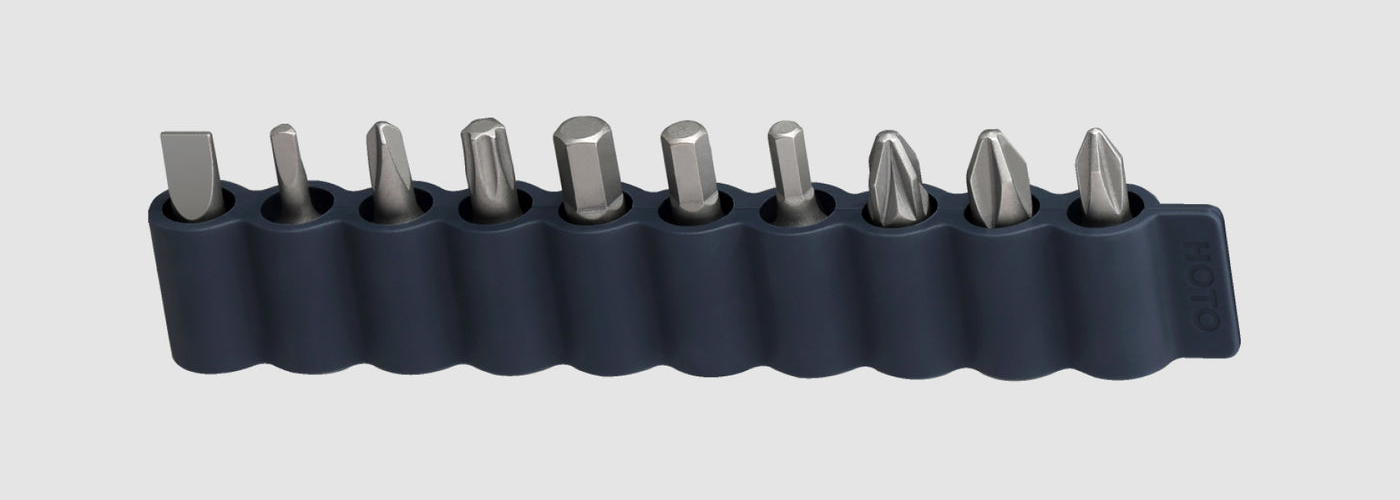 Отвертка комплектуется битами H3, H4, H5, PH1, PH2, PZ2, S2, SL5, T25 и TW1. Набор охватывает наиболее распространённые типы крепежа, что делает его универсальным для бытового применения.