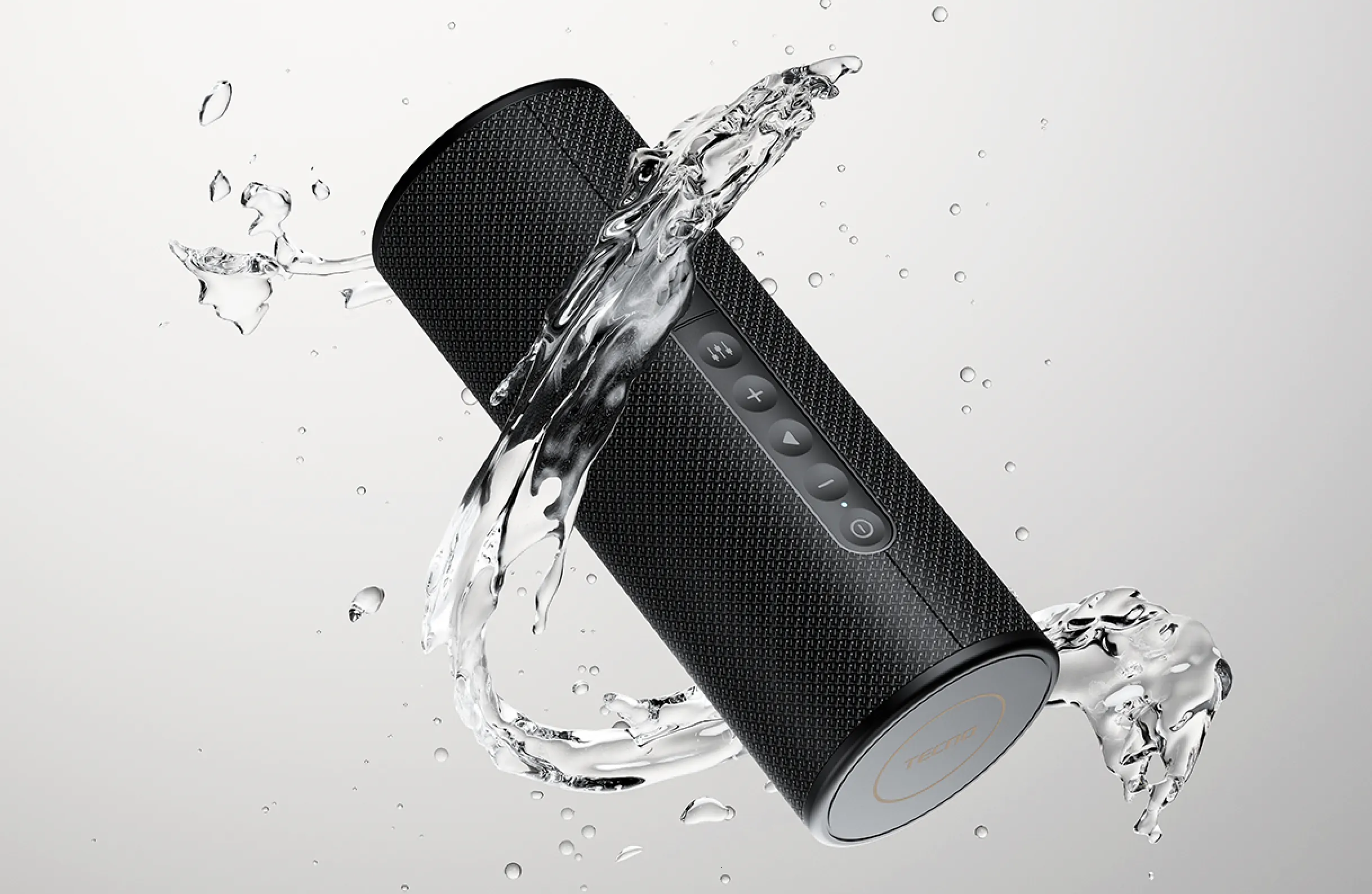 Tecno S6 выполнен в стильном сочетании черного и золотистого цветов, а корпус изготовлен из пластика, ткани и резины, что придаёт устройству прочность и устойчивость к механическим воздействиям. Его компактные размеры — 216×78×78 мм — и вес около 880 граммов делают динамик удобным для переноски и использования как дома, так и на улице. При этом корпус обладает степенью влагозащиты IPX4, что гарантирует защиту от брызг и легкого дождя.
