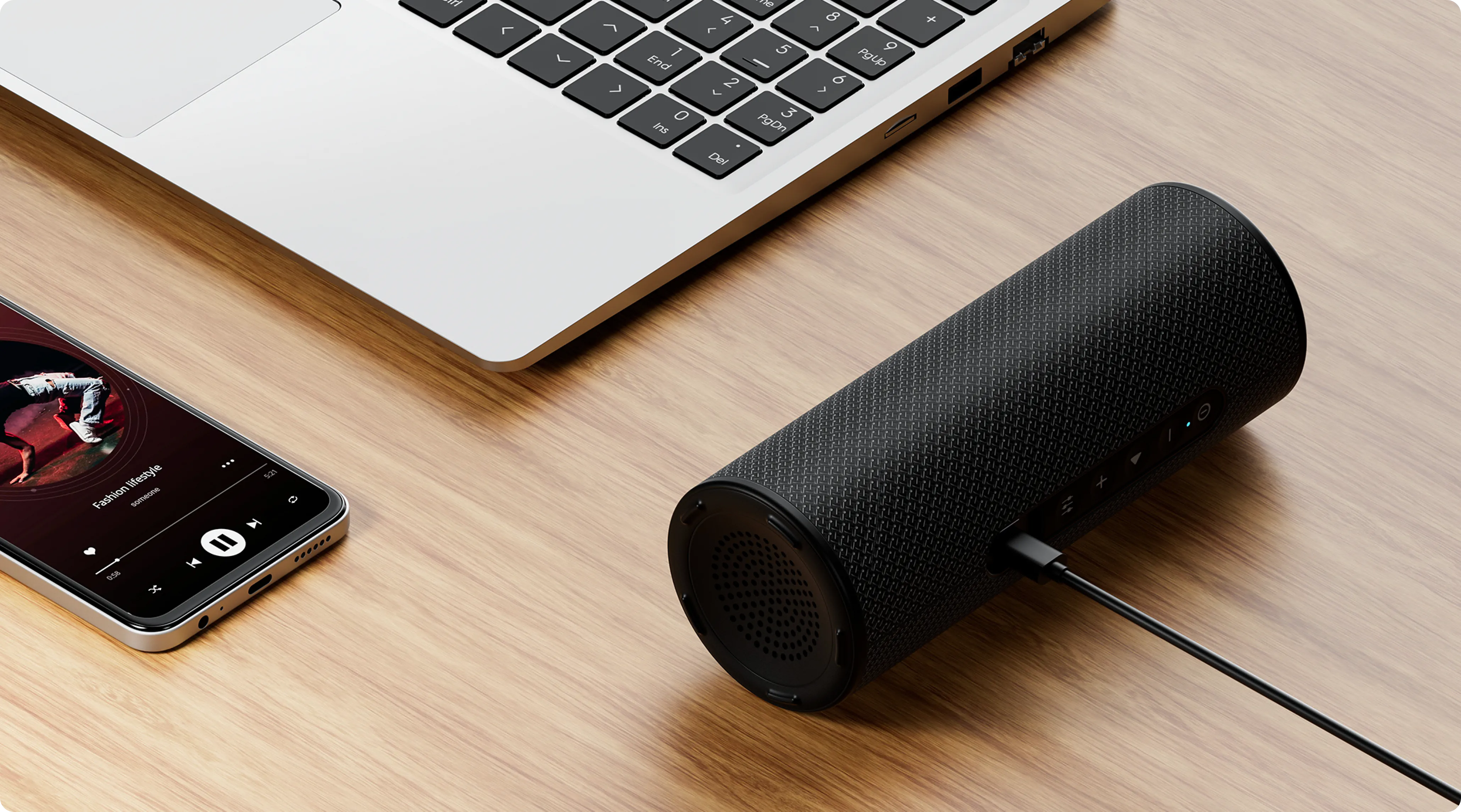 Для беспроводного подключения используется современный Bluetooth версии 5.3, что обеспечивает стабильный сигнал и хорошее качество передачи звука. Дополнительно динамик поддерживает воспроизведение с карт памяти и оснащён разъёмом USB Type-C для зарядки и подключения к другим устройствам. Несмотря на отсутствие линейного AUX входа и радио, этот набор функций полностью покрывает основные потребности.