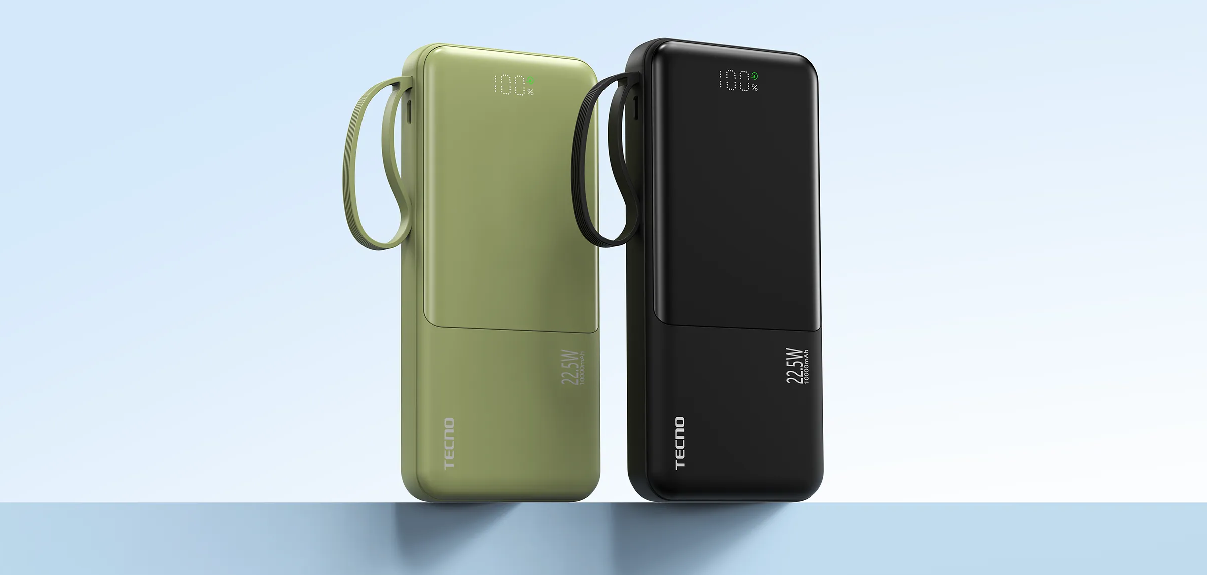 Tecno L101Q выполнен в лаконичном корпусе из прочного пластика. Устройство компактное — 14.6×6.75×2 см — и весит всего 236 граммов, поэтому легко помещается в сумку или карман рюкзака. Корпус не имеет рисунка и выглядит универсально, а встроенная подставка для смартфона делает использование пауэрбанка удобным в дороге или на рабочем столе.