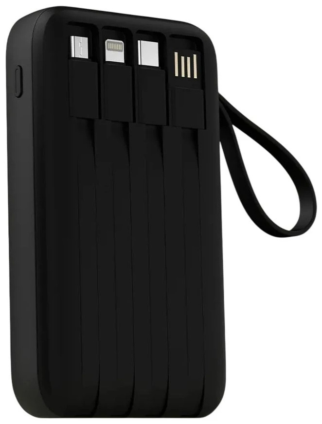| Особенности | встроенная подставка для смартфона, защиты от короткого замыкания, от перегрева, от перегрузки, LED‑индикатор заряда, стандарты быстрой зарядки Power Delivery, Quick Charge 3.0, встроенные кабели Lightning 8-pin, USB Type-A, USB Type-C, micro USB |