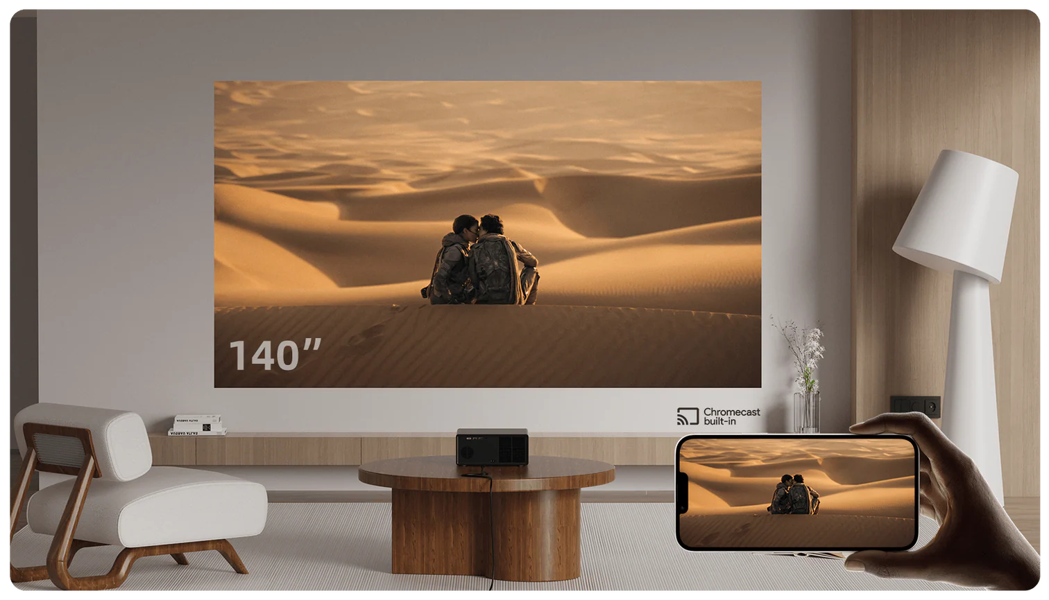 Проектор использует технологию LCD и LED-лампу с мощностью 130 Вт, обеспечивая яркость около 1100 ANSI люмен. Разрешение Full HD (1920×1080) с поддержкой 4K-контента, автофокус и автоматическая коррекция keystone позволяют добиться чёткого изображения без сложной настройки.