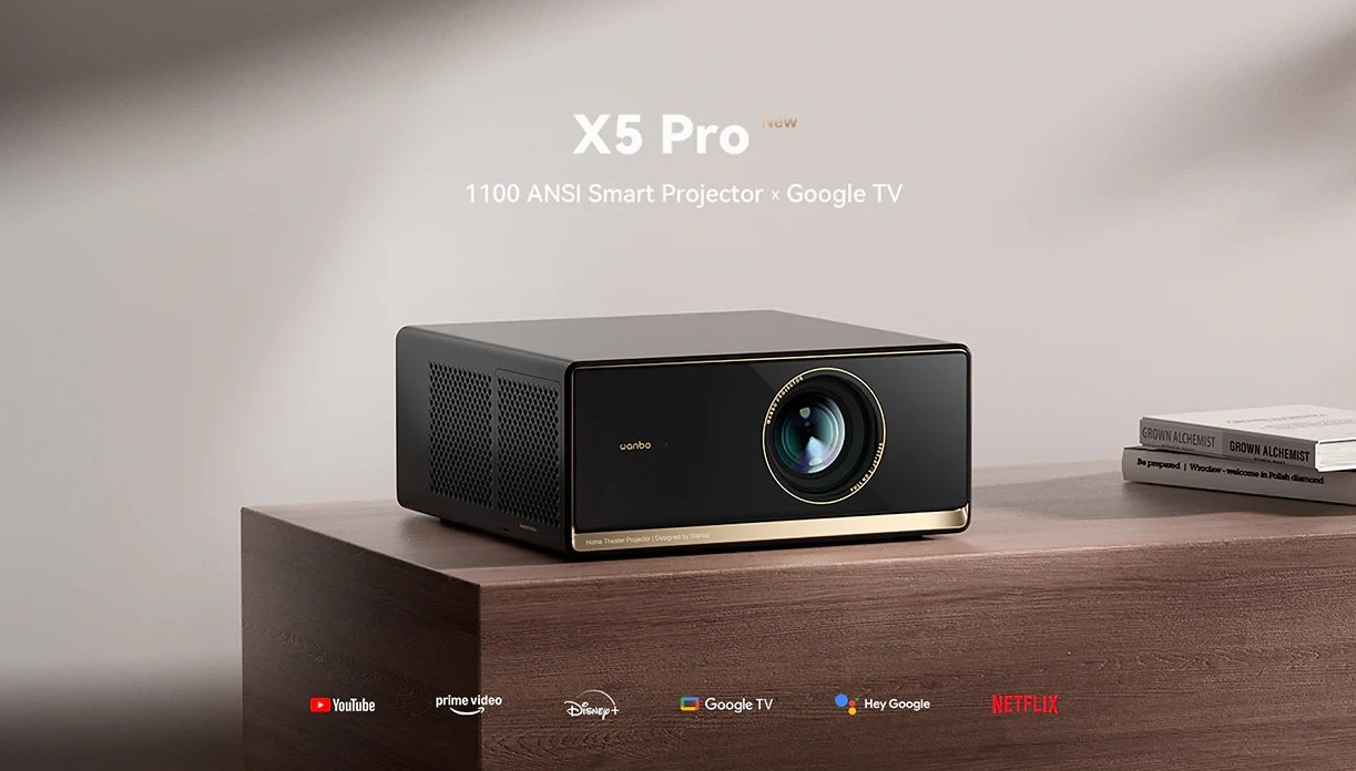 Wanbo X5 Pro имеет корпус строгого чёрного цвета с качественной отделкой. Он достаточно компактный и весит около 2,68 кг, что облегчает переноску и установку. В комплекте идет пульт с голосовой кнопкой и возможностью управления со смартфона, что делает использование удобным.