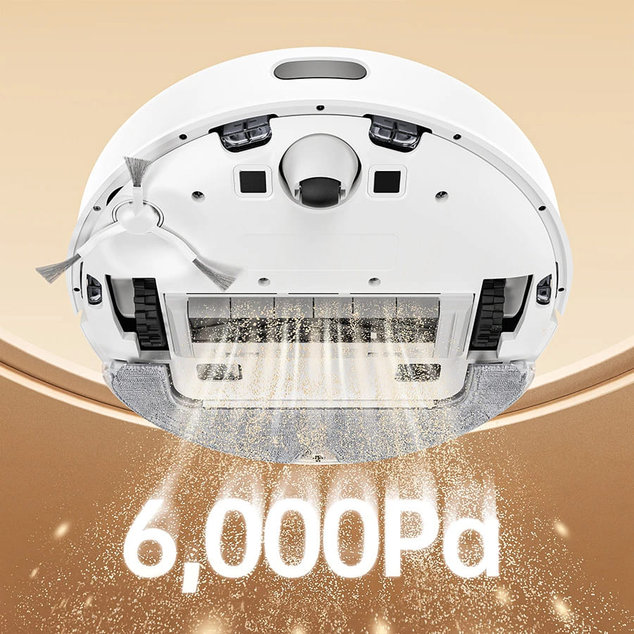 Высокоскоростной двигатель робота-пылесоса генерирует мощность всасывания 6000 Па, позволяя быстро и эффективно убирать грязь и шерсть домашних питомцев. Свободно переключайтесь между 4 уровнями мощности всасывания для легкой настройки процесса уборки, добиваясь оптимальных результатов с помощью D10 Plus Gen 2.