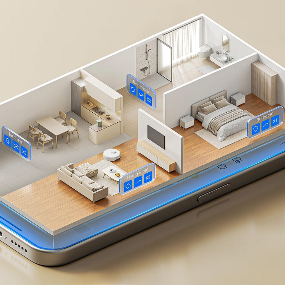 Делите квартиру на специальные зоны и определяйте параметры уборки для каждой комнаты в соответствии с фактическими потребностями с помощью приложения Dreamehome. Вы можете самостоятельно настраивать процес уборки для каждой комнаты — от деликатной уборки пыли в детской до тщательного оттирания грязи на кухне.