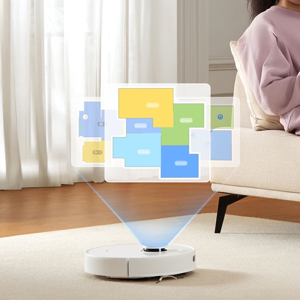 Робот-пылесос D10 Plus Gen 2 создает карты нескольких этажей с учетом особенностей жилого пространства, эффективно адаптируясь к большим многоэтажным домам с разными напольными покрытиями. Составленная карта сохраняется на протяжении всех сеансов уборки.
