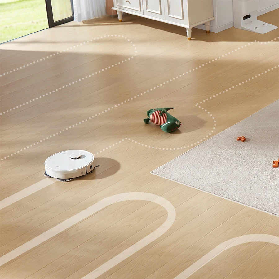 Модель оснащена продвинутой системой навигации, быстро создает точные карты помещений и разрабатывает оптимальные маршруты для качественной уборки. Благодаря датчикам робот эффективно объезжает препятствия, избегает столкновений и падений с высоты — например, со ступенек.
