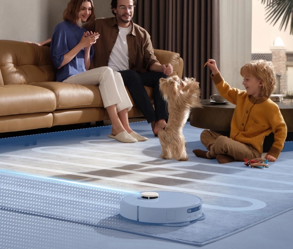 Благодаря продвинутой системе навигации Pathfinder и сенсору AI Action, пылесос уверенно ориентируется в пространстве, точно распознаёт мебель, ковры и препятствия, не путая кабели с преградами. Он создаёт подробную карту помещения и аккуратно прокладывает маршрут, избегая столкновений и не оставляя необработанных участков. При этом LED-подсветка помогает ему работать даже в полной темноте — без риска застрять под мебелью.