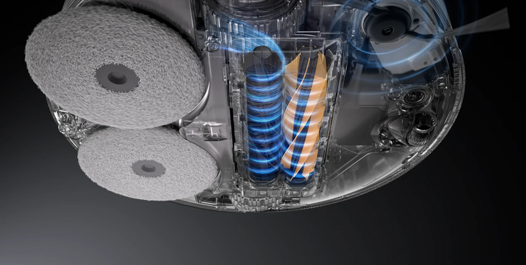 Мопы автоматически выдвигаются и поднимаются на 40 мм при заезде на ковер. Док-станция оснащена резервуаром для чистой воды 4,5 л и контейнером для грязной воды 4 л.