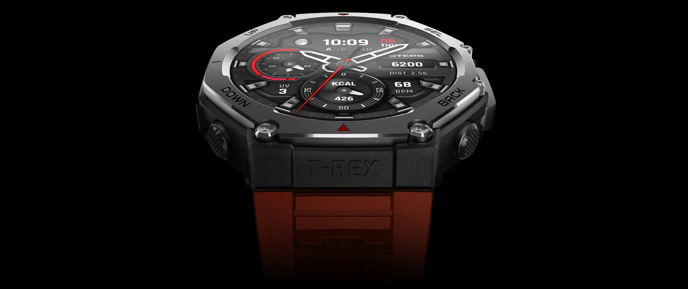 Умные часы Amazfit T-Rex 3 выполнены в прочном массивном корпусе, безель и кнопки изготовлены из нержавеющей стали 316L. Модель выдерживает температуру от +70 до -30 °C. За счет высокой степени водонепроницаемости гаджет отлично подойдет для фридайвинга на глубине до 45 метров.