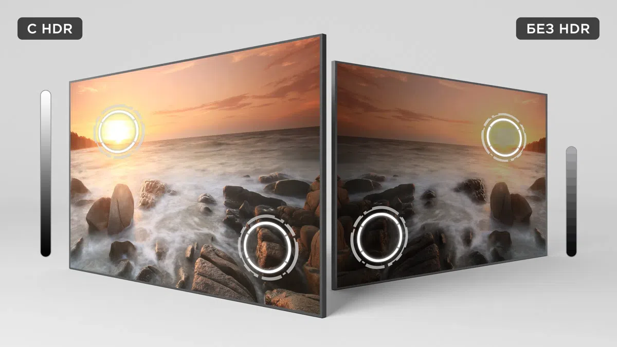 Телевизор имеет разрешение Full HD (1920x1080 пикселей), что позволяет наслаждаться чётким и детализированным изображением. Благодаря поддержке HDR10, изображение на экране становится ещё более ярким и насыщенным, с улучшенной контрастностью и цветопередачей. Такой уровень качества изображения гарантирует отличные визуальные впечатления при просмотре фильмов, сериалов и спортивных событий.