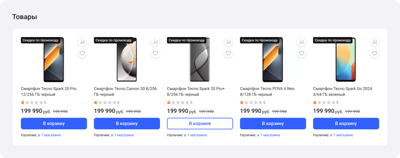 1. Выберите товары и добавьте их в корзину